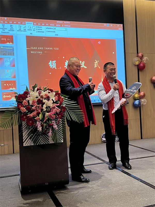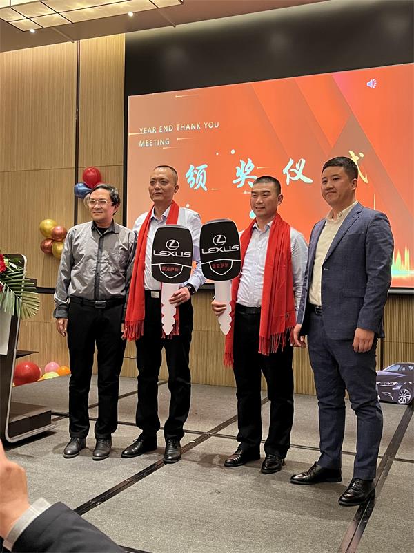 公司領(lǐng)導(dǎo)于年會(huì)上給二人頒發(fā)了2021年度營(yíng)銷(xiāo)冠軍獎(jiǎng)品,雷克薩斯轎車(chē)兩輛。